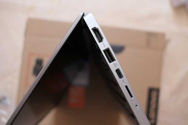 左侧的USB2.0、电源和耳机接口。右侧的HDMI、关机充电的USB3.0、USB Type-C和存储卡接口。左侧的USB2.0接口对于右撇子接有线鼠标略为不便。