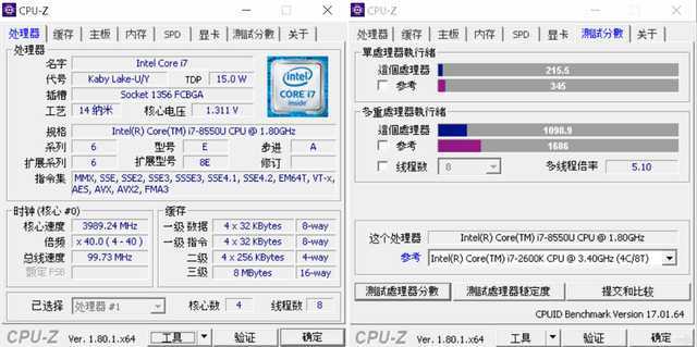 硬件方面采用了Intel® Core™ i7-8550U处理器,NVIDIA® GeForce MX150独立显卡,8GB内存,以及256GB的固态硬盘。