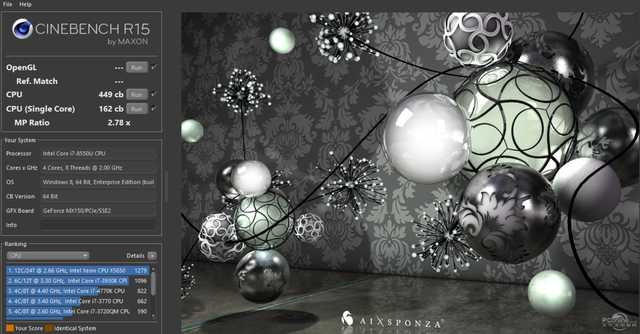 CineBench R15对处理器性能进行了测试,单核获得162cb,多核得分449cb,这样的成绩相当出色,162cb的单核成绩甚至接近i7-7700HQ的成绩。AS SSD Benchmark硬盘测试,持续读取速度为2330.26MB/s,持续写入速度为1399.30MB/s,综合评分为3133分,得分也是十分美好。开机速度、程序加载速度等方面速度提升明显。