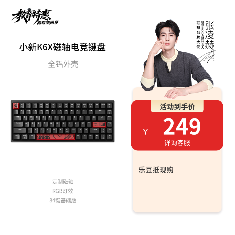 【定制磁轴】联想小新K6X磁轴电竞键盘有线铝坨坨背光84键黑色