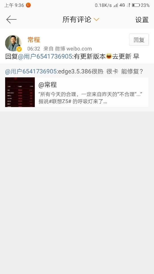 联想社区»论坛 Lenovo 手机 ZUK Edge 常长老说有更新了