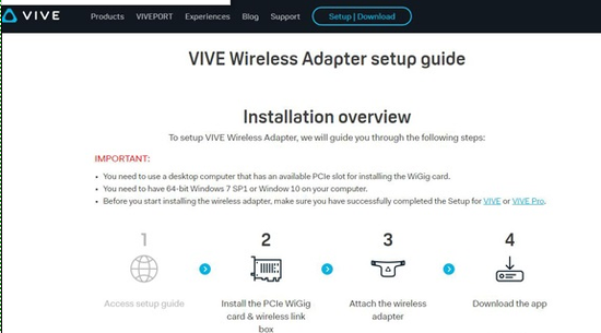 虽然HTC在今年的E3展上证实其Vive无线适配器将于夏末正式发售,但目前还没有具体的发售日期和价格。近日,Reddit用户Dal1Dal在该公司的英国站点发现了一份安装指南(现已无法打开),详细介绍了Vive无线适配器的整个设置过程。