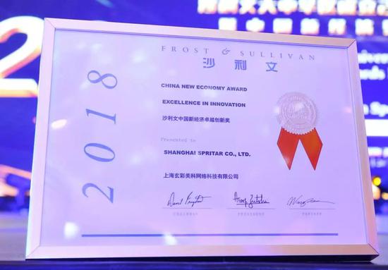 2018年7月26日,全球著名增长咨询公司Frost & Sullivan弗若斯特沙利文(简称“沙利文”)在上海举办中国新经济峰会,上海玄彩美科网络科技有限公司受邀参与此次中国新经济峰会,并与Face++、腾讯科技一同荣获中国新经济大奖。