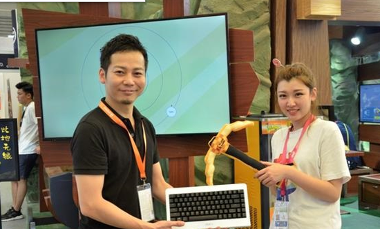 E7馆,视天科技作为小霸王合作伙伴,在小霸王倾心打造的PC主机——如意发布之际,受小霸王邀请在其展台联合展出全球最轻量级的VR头显——miniVR,完善了小霸王主机主打的VR教育生态和VR娱乐生态中最重要的视觉呈现部分。