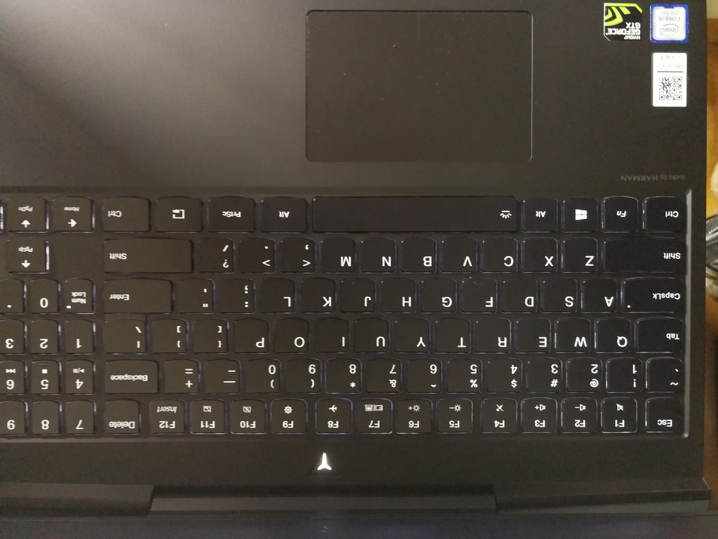 看A面黑色的塑料材质看起来还不错,整体设计是中间一个大y,个人感觉简洁美观,旁边的两条线,使得a面更有立体感,线条感很好,开机后logo有白色背光,还有的是与y7000的大屁股不同,这个的屁屁比较小,感觉更加的美观了,这种设计可以很好的把键盘的高温区往后移,是键盘的温度降低了,我感觉使用体验还是有很好的提高的,不过y7000p并不能反转180度,与y7000成一个对比,这次