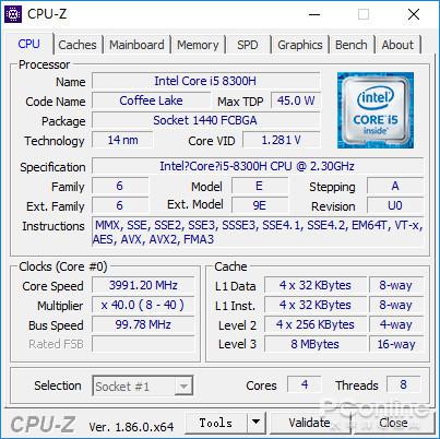 Intel Core i5-8300H 四核 主频2.3GHz