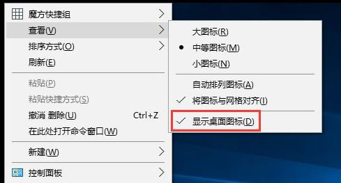 1、在桌面上按下“Shift+F10”,这时候在桌面左上角会弹出右键菜单,在查看选项中勾选“显示桌面图标”即可。