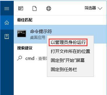 1、按下Windows+Q组合件打开小娜,在搜索框中搜索 cmd ,在命令提示符上单击右键,选择【以管理员身份运行】;