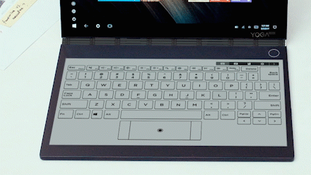 实体键盘换成虚拟键盘,怎么保证输入体验?这是一个很大的挑战,YOGA Book 2的研发团队没有为了创新丢掉本职的东西。新一代的墨水屏虚拟键盘,虽然按键本身仍然是平坦的,但使用了创新的墨水屏3D效果键盘设计,打字时可以感受到震动,同时也会有音效提醒,还原出了实体键盘一般的体验。
