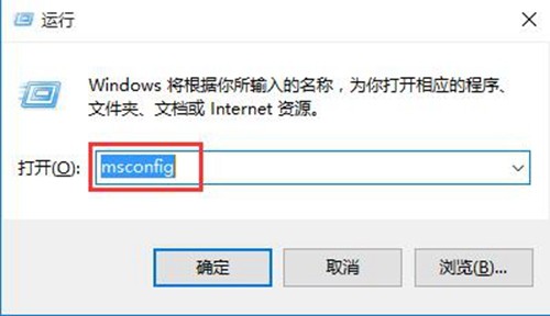 1、在Win10系统里同时按下”Win+R“组合按键,在打开的运行对话框里输入命令:msconfig,然后点击确定,如图所示: