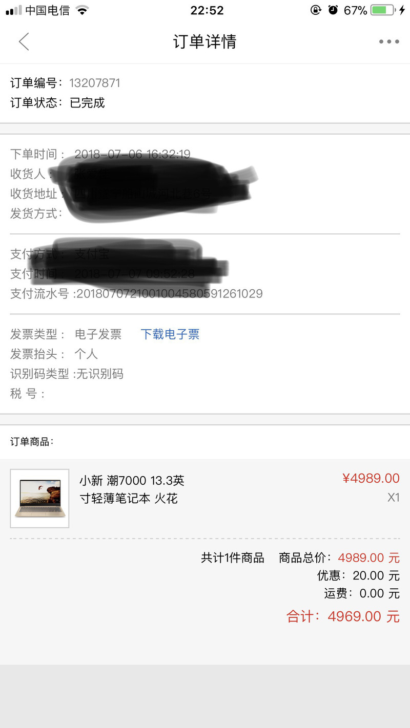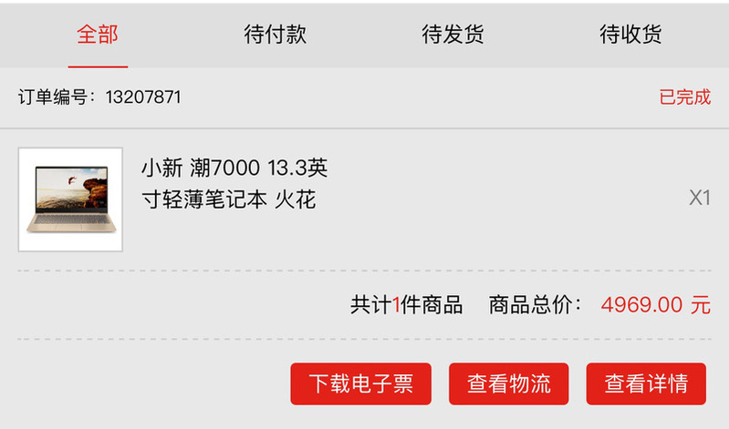 7号下单的时候官网说可能要9号才发货,但是!9号就接到了顺丰的电话,我的小新潮7000-13笔记本到了。这速度简直惊喜!