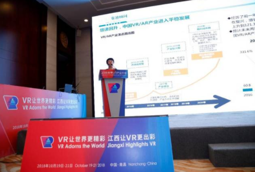 2018年10月20日,2018世界VR产业大会·投资路演分论坛在江西省南昌市前湖迎宾馆抚河厅顺利召开。本次论坛以“独具慧眼,重回巅峰”为主题,该论坛是2018世界VR产业大会的十四个平行分论坛之一,由虚拟现实产业联盟主办,赛迪顾问股份有限公司承办,深圳证券信息有限公司、南昌市红谷滩新区人机智能产业发展促进会、国科创新创业投资有限公司共同协办。