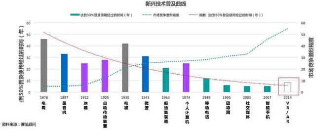 趋势三:相较其他产业,VR/AR推广普及所需周期较短