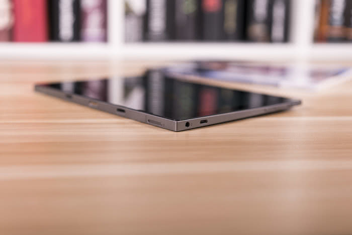 和传统笔记本比起来,这个侧面真的太清爽了,这是以取消部分接口为代价。