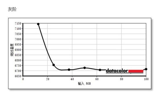 灰阶方面,显示器在20%-100%的亮度下都非常稳定,基本是在6700K-6750K之间。