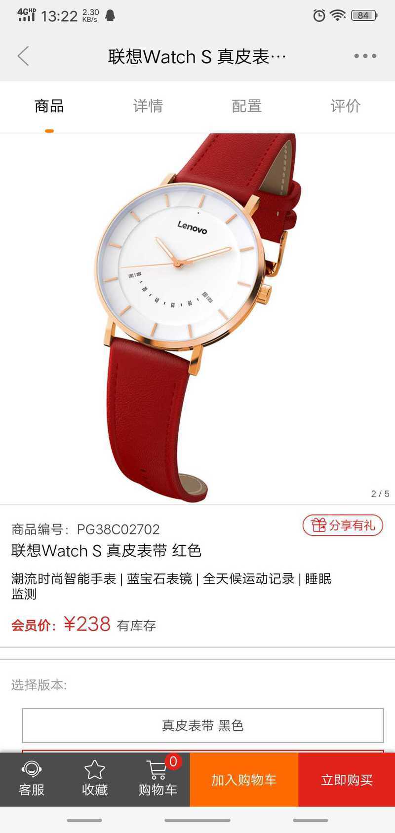 看上去非常的漂亮有气质,非常符合我的心意。联想Watch S智能手表采用了直径40mm表盘尺寸,搭配黑、白双色简约表盘和夜光指针,黑色和红色的经典色表带,男女佩戴皆宜。联想Watch S售价仅有238元,性价比颇高。选择一款将潮流与商务风格融合于一身的智能手表,这就是最好的选择,祝联想双十一大麦。{:8_194:}
