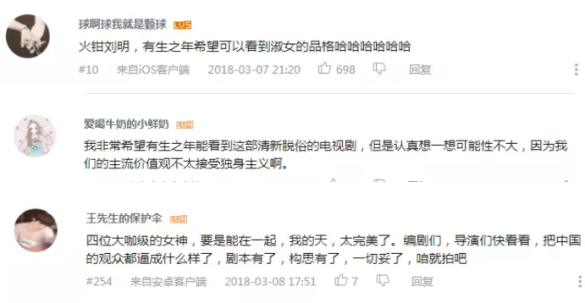 去年刚确定要翻拍的《粉红女郎》,已经出来了? 不过……是B 站网友自制版。 请各位看官品鉴—— 《粉红女郎》 参演者:贾玲X张雨绮 X 周冬雨 X 陈数 ![]() (资源来自B站:逆转的桥) 这样的阵容,怕是从来没见过吧? 你们能想出每个人对应的角色吗? 万人迷——张雨绮 ![]() 人生经典语录:我是一个女权主义者,我不会为了一个男人去伤害一个女人,我不想所有的女人都把我当成第三者。 哈妹——周冬雨 ![]() 人生经典语录:人生的题中之意,在于用什么样的表情面对折磨。 结婚狂——贾玲 ![]() 人生经典语录:等他回来我就可以结婚了。 女强人——陈数 ![]() 人生经典语录:做一个坚强的女人,无论受伤与否,无论多苦多累,都值得。 乍一看,强行将四个人拼在一起的感觉很别扭。 再一想,这四个人的性格和做事风格,倒也和UP主安排的角色比较吻合。 不止女演员一个萝卜一个坑,就连剧中的男演员的扮演者也被安排的明明白白! 龚喜——沈腾 ![]() 哈哈哈哈哈沈叔叔这个满面愁容的样子,怎么一点都没有违和感呢? 王浩——朱一龙 ![]() 我们的小公爷,一脸深情的样子和王浩这个角色还蛮搭的。 白玉堂——吴亦凡 ![]() 原版中的白玉堂玉树临风、清新俊逸。 就冲吴亦凡这个颜值,白玉堂这个角色轻轻松松get。 罗密欧——陈伟霆 ![]() 当初陈坤扮演这个角色的时候就是一种邪魅的感觉,陈伟霆也是这种邪魅还魅力四射的男人啊! ![]() 视频只有两分钟,但你们感受一下满屏的弹幕 ↓ ![]() 还有评论区的彩虹屁 ↓ ![]() ![]() 除了夸,还能说些什么呢? 整段剪辑超乎寻常的流畅,不仅人物关系交待得很清楚,就连上一个人物的动作和下一个人物的动作也能连贯起来,同时还摘取了符合各自性格的台词放在其中。 就举一个小小的例子让大家感受一下—— ![]() ![]() ![]() 这是一个连贯的动作:万人迷强大的气场、美丽的脸庞让站在女强人身边的哈妹看傻了眼,直到两个人寒暄过后都还没缓过劲儿来,随后女强人勾了勾手示意哈妹“赶紧过来啊”,哈妹才慌乱跑过去。 OMG!明明是两部戏,但 B 站的这些神仙剪刀手就能将这些细节完全重合拼凑成一部新剧。 再配上原版带感主题曲《大家来恋爱》。 嗯!是想恋爱的感觉。 ![]() B站这个藏龙卧虎的地方,这样的自制剧屡见不鲜。全靠两只手,时时刻刻就能剪出一部电视剧。 就在去年,韩国上映了一部电视剧《绅士的品格》 ↓ ![]() 四个年近四十的老男孩在事业、爱情、挫折中成长,四个人都是主角。 看豆瓣评分就知道,剧情质量不错 ↓ ![]() 微博上有个博主直接依葫芦画瓢写了一版《淑女的品格》剧本 ↓ ![]() 就连哪个角色谁来演都想好了。 这条微博直接顶上热搜,在大家的齐心协力之下,就连海报都安排上了 ↓ ![]() ![]() (图源:RAIN渲) 这边微博脑洞大开,隔壁的B站直接出了《淑女的品格》预告片。 选取自四个女演员所有出演过电视剧中的片段,就这样在素材有限的情况下,UP主“煎饼娘”都能化腐朽为神奇。 四个大气从容的女性在一句台词都没有情况下,气场都能二米八! 曾黎的出场 ↓ ![]() 俞飞鸿的出场 ↓ ![]() 袁泉的出场 ↓ ![]() 陈数的出场 ↓ ![]() 两分钟的预告片,弹幕里全在求:希望有生之年能够看到这部剧的翻拍。 ![]() 没想到两个月后,壹心娱乐宣布#淑女的品格 # 正式立项,而且陈数也会出演其中的角色。 ![]() ![]() 但自从立项的微博发出来后就没什么动静了,网友期盼的另外三个女演员也不知道是否会参加。 从豆瓣上来看,想知道演员阵容只能等到2020年了。 ![]() 就是不知道剧情怎么样。 ![]() 一入B站深似海,从此微博是路人。这句话真是一点没错! 甭管你想不想得到的CP,都能在这里牵上线。 比如—— 《微微一笑很倾城》:杨洋X迪丽热巴 ![]() ![]() (来源:up主 进击的可乐罐咕噜噜) 好甜呐! ![]() 《白蛇·缘起》真人版:杨洋X 刘亦菲 “你是人,跟我在一起只会害了你” ![]() (UP主: JiuShiTai ) 一句话,三个镜头,心酸至极! 往日的两个人你侬我侬,如今只能天各一方。 ![]() ![]() ![]() 看完之后,竟然有种想刷一次《三生三世十里桃花》并开着《白蛇·缘起》BGM 的冲动。 ![]() 还有一个,虽然剧情很悲伤,但总忍不住笑是怎么回事? 刘昊然X贾玲 ![]() 今世的相遇让他们回想起了往日的虐恋。 初次相见时,四目相对,芳心暗许。 ![]() 再次相见,他为了讨她欢心,拿了一盒吃食。 她开心,他也开心。 ![]() 然而好景不长。 他要带兵去打仗了,她心中万般不舍也只能化作一滴一滴地泪珠。 ![]() 手中紧紧握着他给她买的礼物 ↓ ![]() 睡梦中的她没有等来他凯泉归来的好消息,反而梦到了他战死沙场的画面。 ![]() (贾玲这个激灵太魔性了) 这一世的爱恋,就戛然而止。 上辈子没完成的梦,这辈子终于实现了。完结! ![]() 加了滤镜和磨皮的两个人,为什么这么有感觉?!好想原地看他们谈恋爱! ![]() 说了这么多,不知道你们有没有发现一个问题——B 站的自制剧,颇受欢迎。 随便在微博搜一搜关键词“自制剧”,出现的都是大家对于自制剧的神仙夸赞。 ![]() ![]() 明明中国的电视剧一部接着一部,按道理来讲,不会出现剧荒的情况。 但上线的新剧虽多,其中却有很多是翻拍的。 就去年确定翻拍的剧,已经数不胜数 ↓ ![]() 但质量呢?一次不如一次。 剧情注水严重、拖沓,演员演技不在线。 吹胡子瞪眼就是生气,大笑蹦跳就是开心。 抠图、替身、不背词。 即便是蹭到了