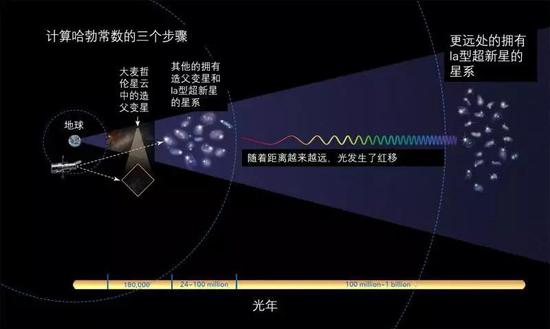 计算哈勃常数的三个步骤(图片来源:HUBBLBSITE)