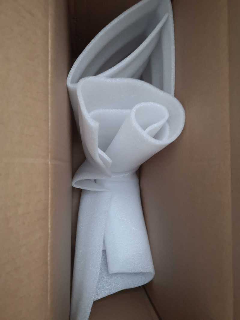 给大伙看一看,除了电脑箱子以外外面还套了一个纸箱子,纸箱子里还有两个泡沫垫子,挺厚实挺软,想来运输途中有偶尔的磕碰也不会对机器造成影响。
