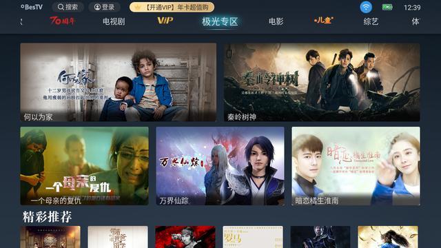 相关的分类选项位于上方的位置,主要包括了:应用,想看,精选,电视剧,电影等。而居中的则是相关的影视推荐,例如院线推荐等,位于第二排的最左侧则是我的应用。