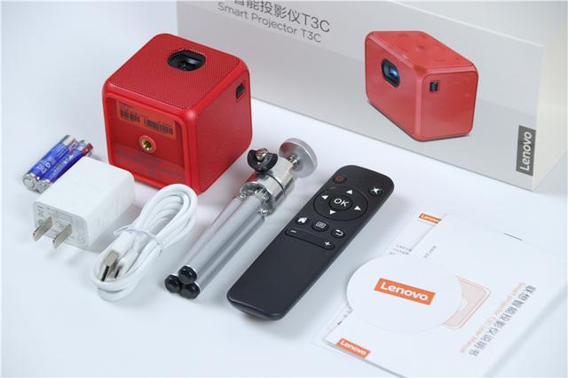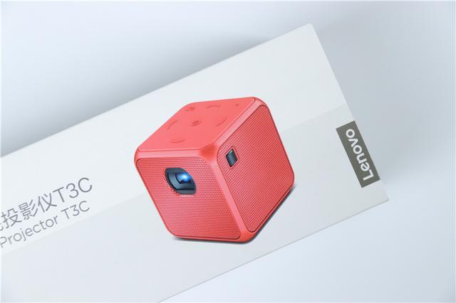 说在前面: 近年来,智能投影走进千家万户,看目前的势头,势必要跟电视行业要平分天下。电视在画面成像方面有着得天独厚的优势;而智能投影,则有着百寸大屏的优势,在家就能体验影院的感觉,而且价格也相对便宜些。在便携方面,智能微投也更加有优势,但要说拎包携带的话,恐怕就有点难度了。不过,笔者还是体验到了一款手掌大小的智能投影,它就是联想刚刚推出的智能投影仪T3C。如果不说它是一款投影的话,相信你一定会将它当做一款移动音响的。 这么小的投影能干什么?我刚收到的时候也是这么想的。真的是太小了,跟之前接触过的智能微投相比的话,简直有着天壤之别呀。携带外出没有任何压力,而且可以在车内,户外野炊等场景下也都是可以体验的。好了,废话不多说,一起来看看它都有哪些本领吧。 产品细节与体验: 这么小的投影,包装当然也不会很大。这款联想智能投影T3C的包装盒采用了全白色设计,正面有着这款投影的外观图,产品型号以及联想的LOGO。这款投影有多个颜色,分别是黑色,白色,和红色。笔者这款便是红色。