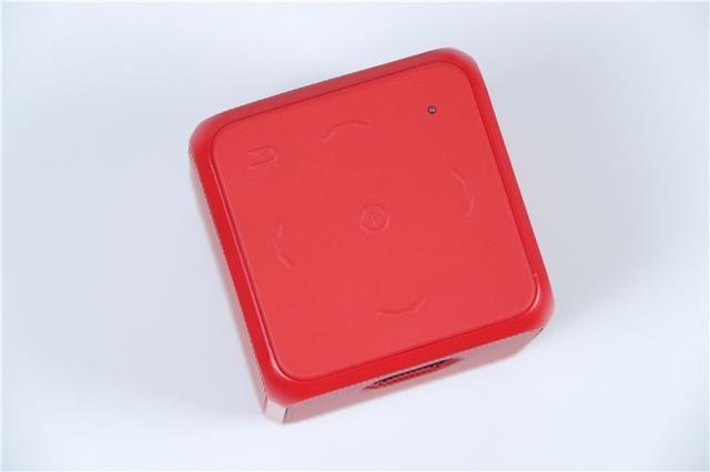 主要的操作面板位于机身的顶部位置,上面覆盖了一整块的红色橡胶面板,每颗按键在上面都做了立体式的标识,便于用户操作。居中的则是电源/确定按键,四个方向位置的则是方向键,在左上角位置则是返回键,右上角则是一颗LED指示灯。
