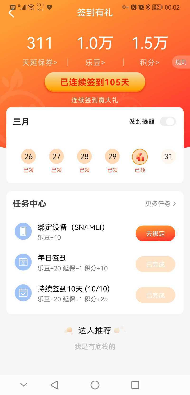 3月30日app签到没有送延保券,请补发处理 |