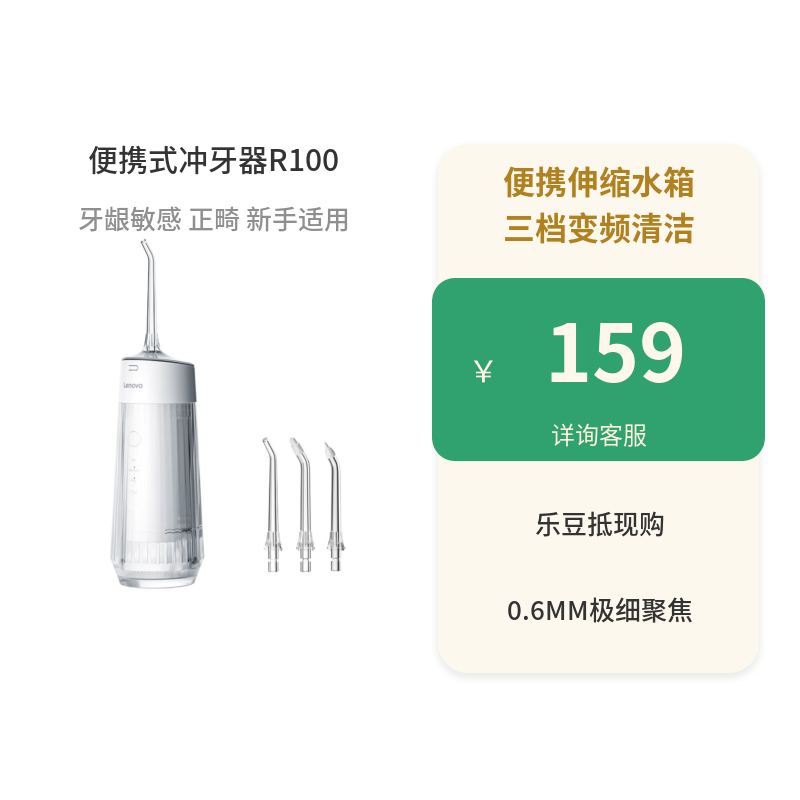 你还以为联想是一家传统的pc厂商吗?并不是,经过这几年的不断发展,联想除了pc、平板、手机以外,在sIot领域也深耕了几年,也推出过智能门锁、智能摄像头、空气净化器、扫地机器人等几款销量还不错的产品,当然,这几款产品我家里也正在使用。在联想健康板块里,有智能跑步机、按摩椅、腕力球、智能牙刷、智能跳绳、体脂秤......最近,联想也推出了一个全新品类---联想便携式冲牙器R100。可能有些朋友之前并不了解冲牙器,其实我在拿到产品之前也不太了解,上网查阅了相关资料才有一定认知。冲牙器是一种清洁口腔的辅助工具,利用脉冲水流冲击的方式来清洁牙齿和牙缝,有我们常见的便携式和台式的。
