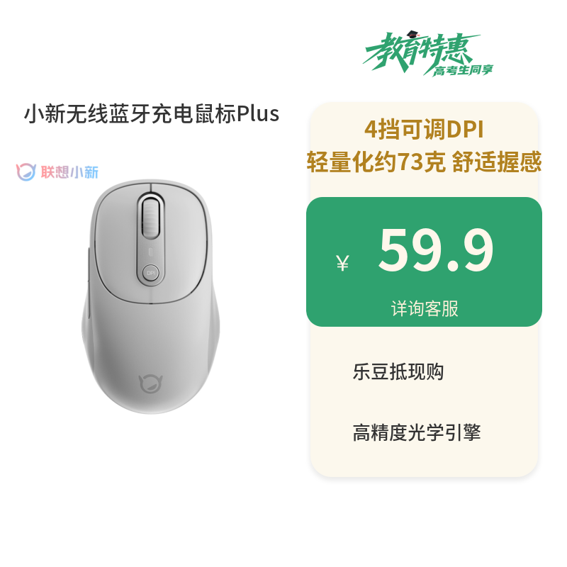 【爆款】联想小新M3 Plus月慕白无线蓝牙静音笔记本台式办公鼠标