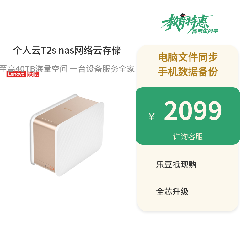 联想个人云T2s nas网络云存储 【双盘位无盘版】