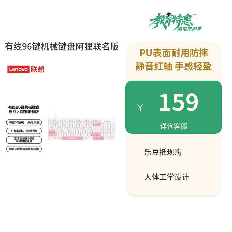 【静音红轴】有线96键机械键盘办公游戏乐豆x阿狸联名版 狸粉色