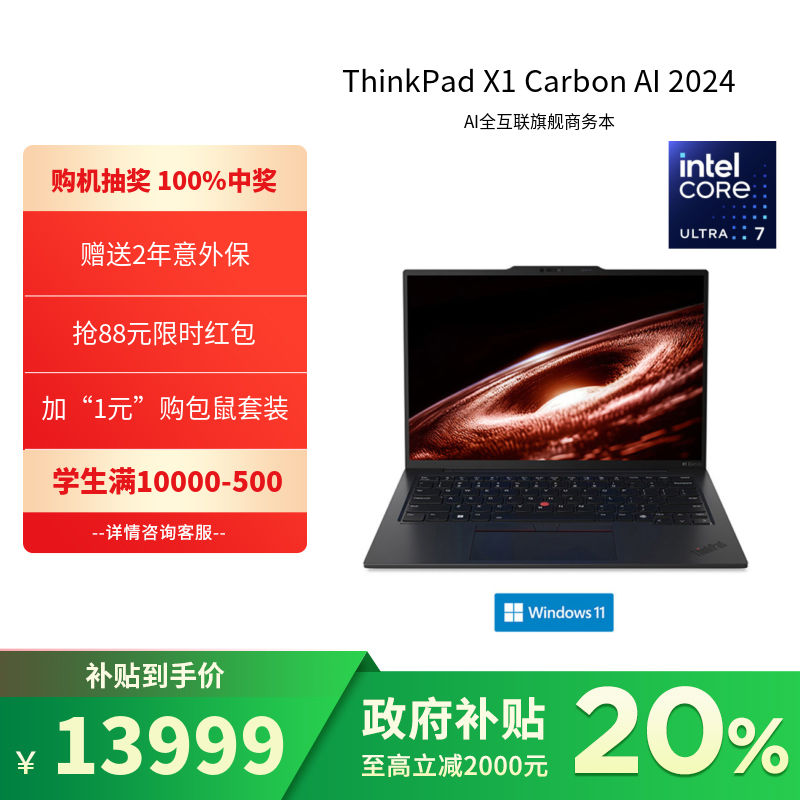 ThinkPad X1 Carbon AI 2024 英特尔酷睿 Ultra7全互联旗舰本01CD