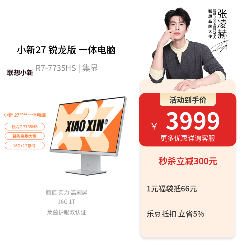 小新27 锐龙版R7-7735HS 16G/1T 27英寸 一体电脑 浅色