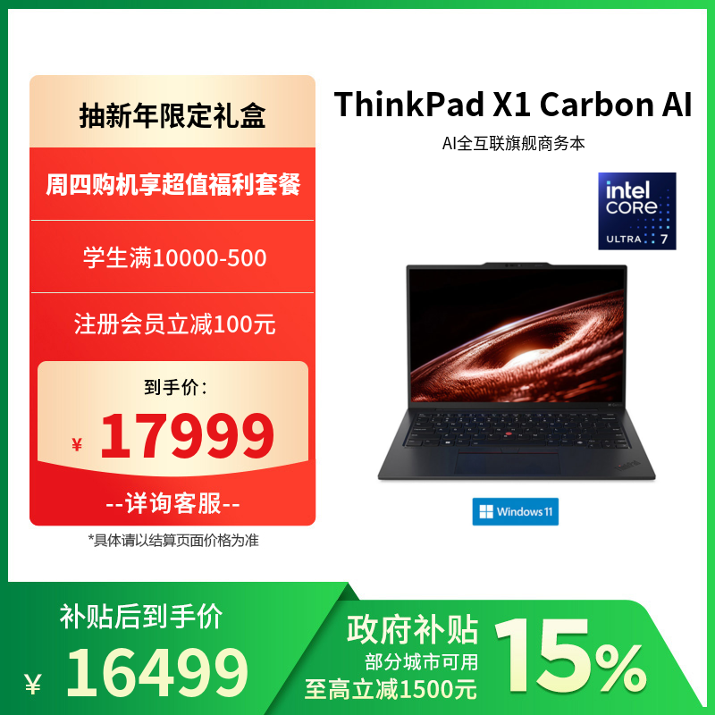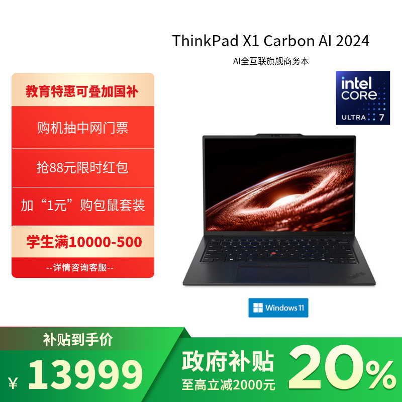 ThinkPad X1 Carbon AI 2024 英特尔酷睿 Ultra7全互联旗舰本01CD
