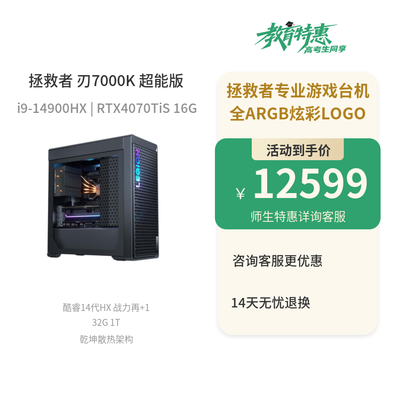 【旗舰标杆】拯救者 刃7000K 超能版i9 RTX4070TiS 台式机