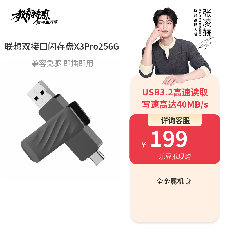 【高速双接口】联想闪存盘固态u盘256GB大容量手机办公小巧便捷