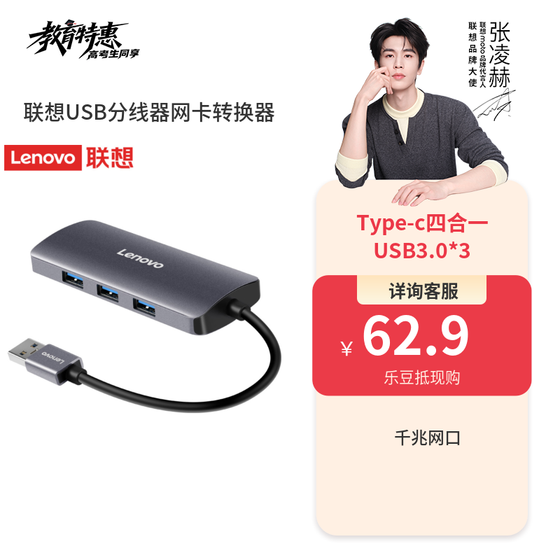 联想USB分线器 U03千兆有线网卡 RJ45网口转换器