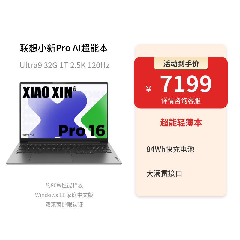 AI元启/Ultra 9/Pro 16:国补价:7199*(1-20%)=5759元