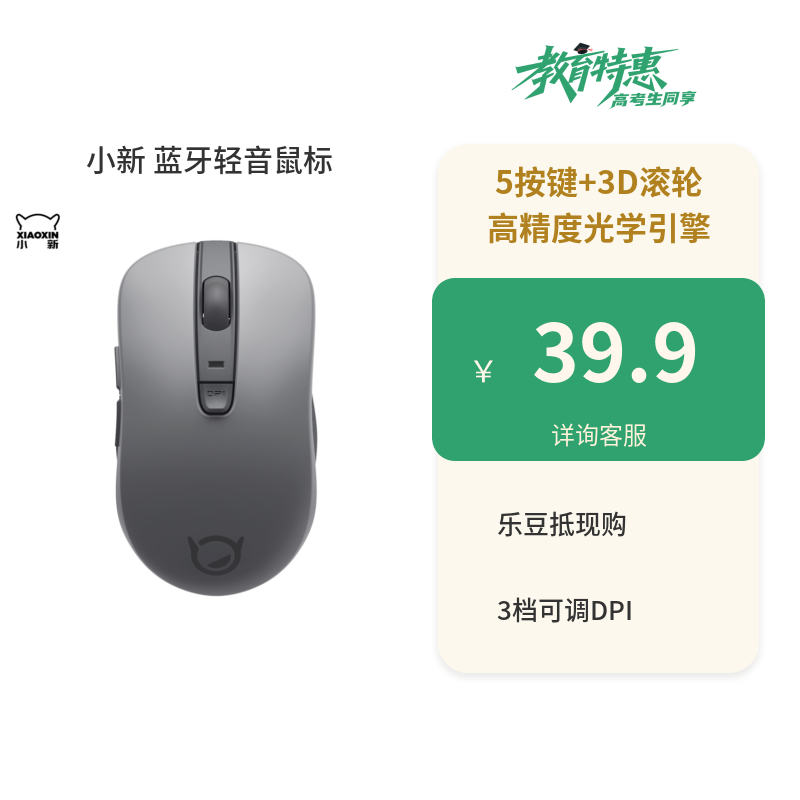 小新蓝牙轻音鼠标(岩灰)41.9元