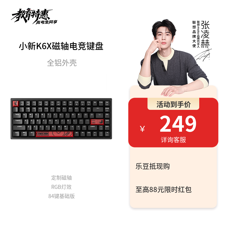 联想小新K6X磁轴电竞键盘-84键基础版黑色 249元
