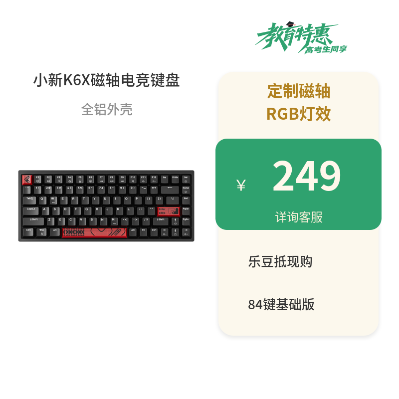 联想小新K6X磁轴电竞键盘-84键基础版黑色 249元