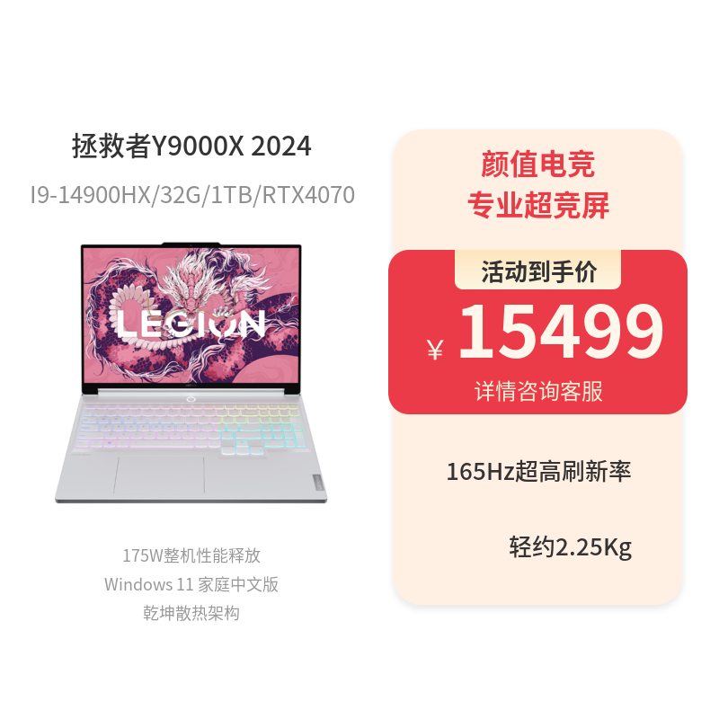 y9000X2024元启版4070:国补价:15499-2000(顶格20%已达2000上限)=134999元