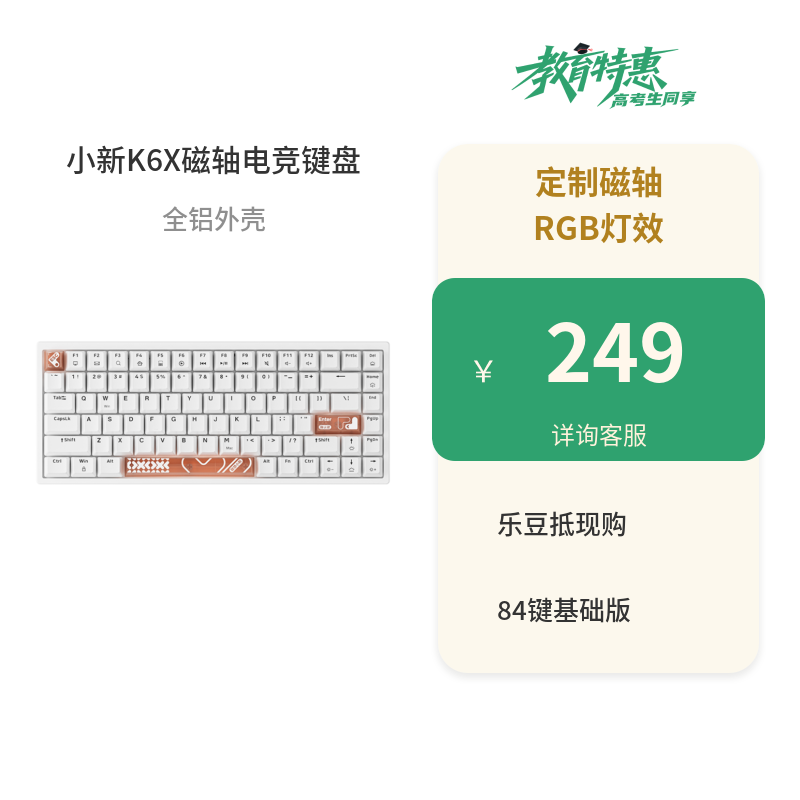 【定制磁轴】联想小新K6X磁轴电竞键盘有线铝坨坨背光84键白色