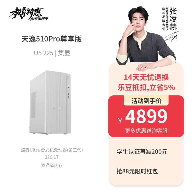 【专业高效办公】天逸510Pro尊享版Ultra 5/32G/1T 台式主机电脑