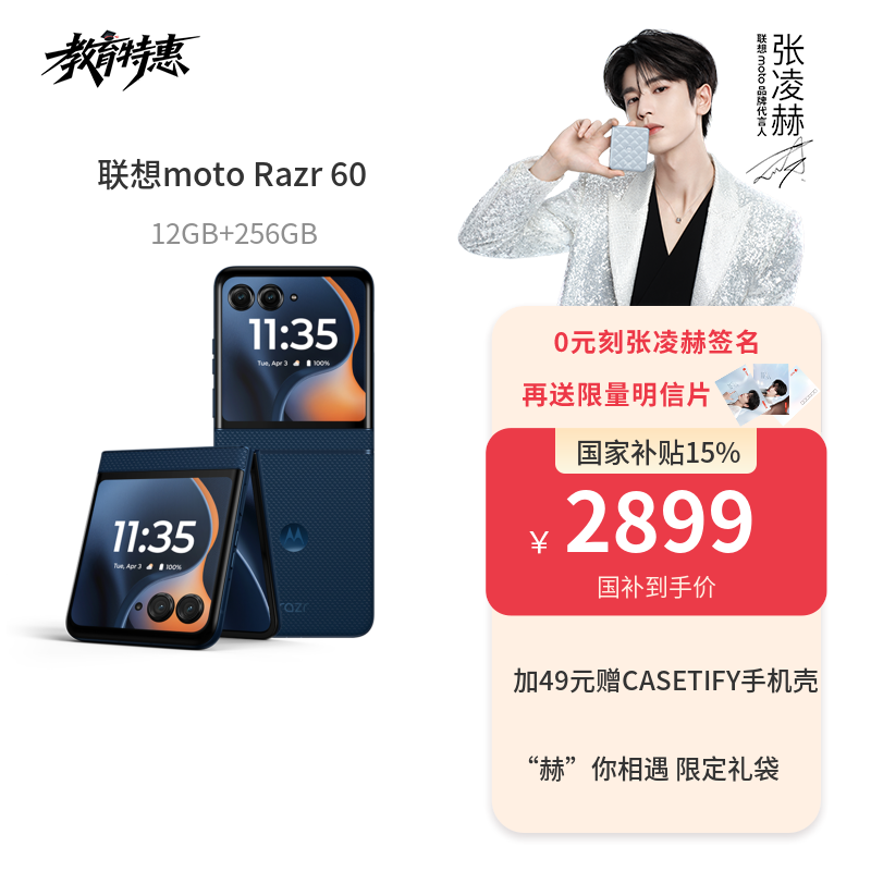 【张凌赫同款】联想moto razr 60 8GB+256GB 午夜苍蓝