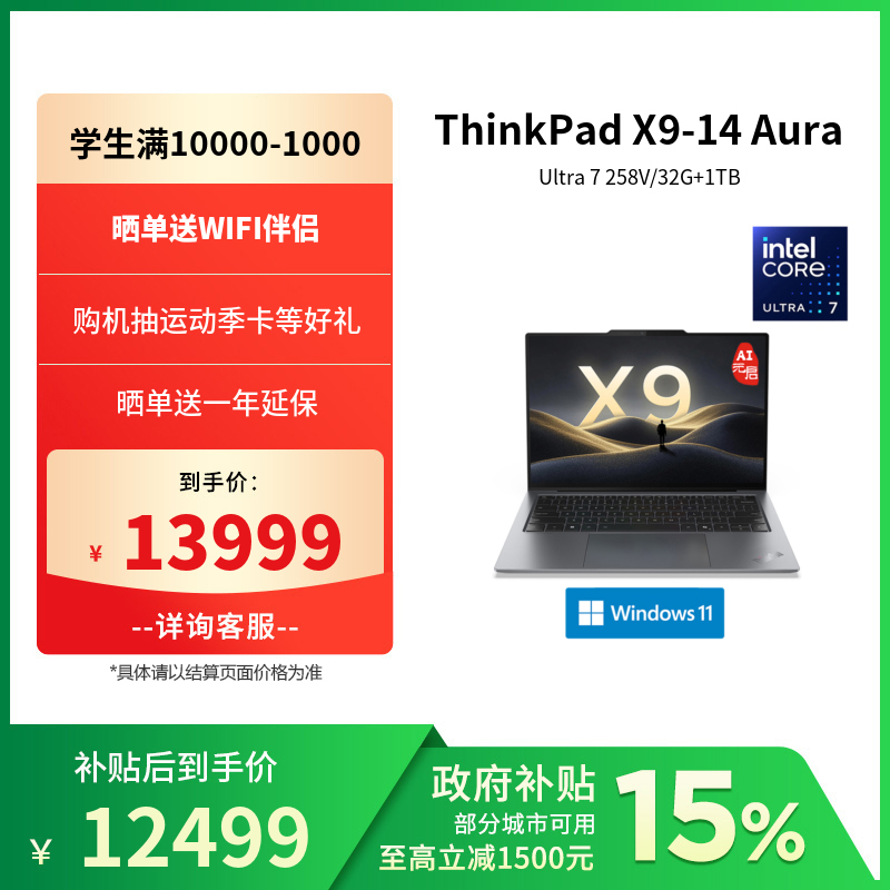ThinkPad X9-14 Aura 酷睿Ultra7 旗舰商务本AI元启版 5NCD