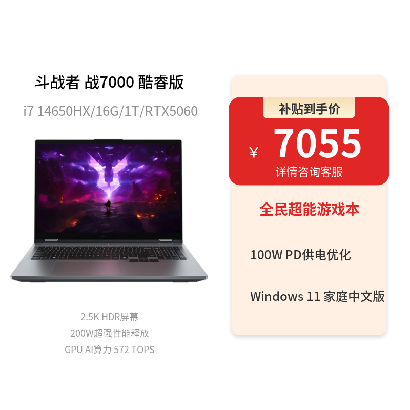 来酷(Lecoo)斗战者 战7000 酷睿版 2025 16英寸电竞游戏本 月光灰
