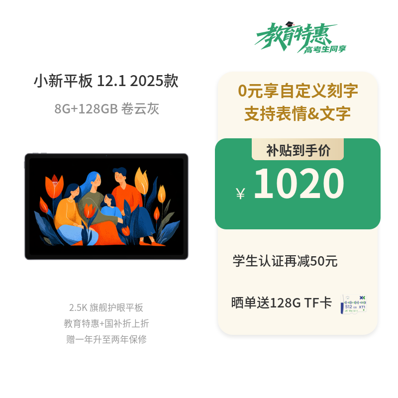 20258620:00,联想正式开启小新平板12.1的首销狂欢!基础版1199的定价直接击穿行业底价,更推出三大超值福利: 1️教育专享:学生/教师认证立减502️国补叠加:部分区域可享额外补贴 3️限时特惠:首发期赠原厂保护套+触控笔尖套装 三重优惠叠加后,实际入手价可低至1149,堪称年度最值平板!