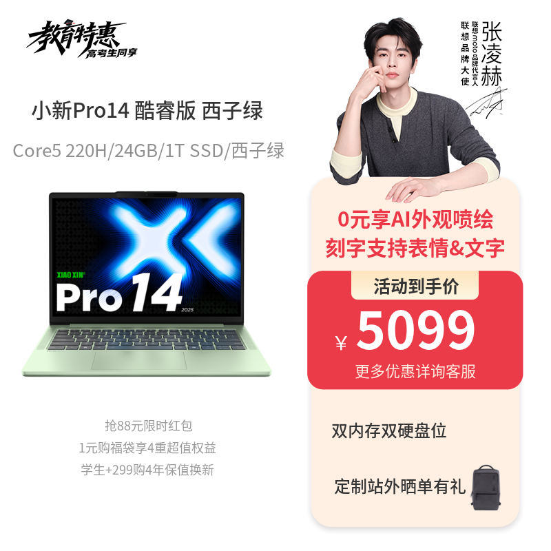 联想小新Pro14 2025款14英寸轻薄笔记本电脑 西子绿