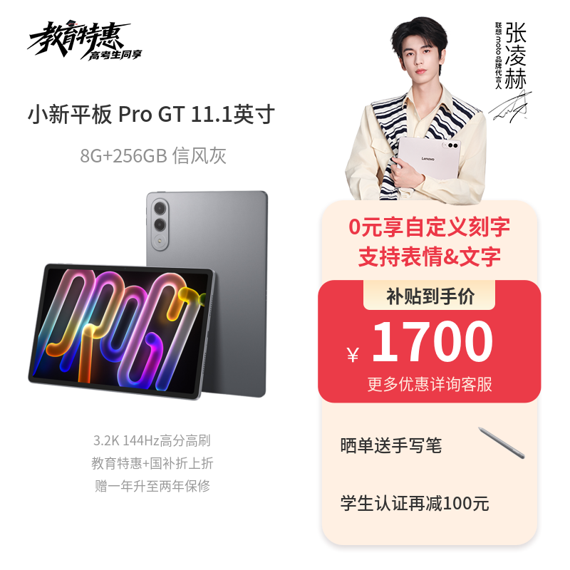 联想小新平板 Pro GT 11.1英寸学习影音办公 AI平板电脑 信风灰